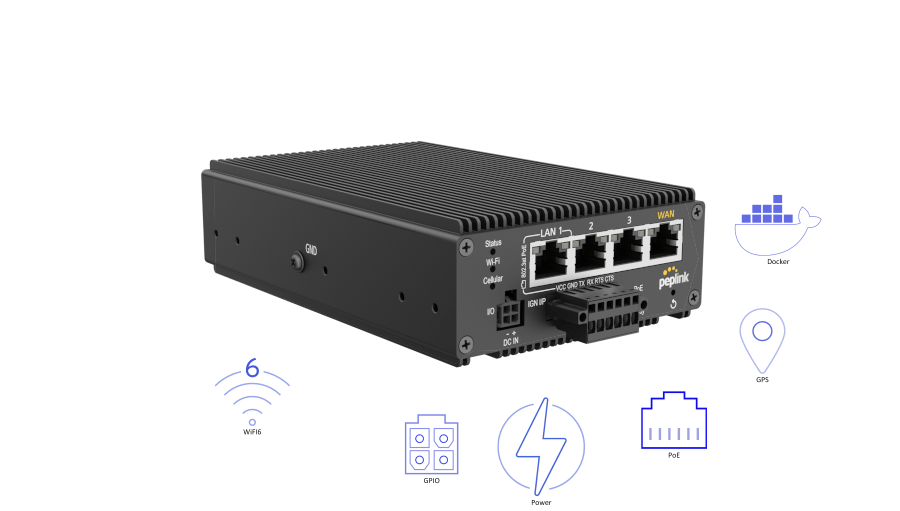 Ein neuer Transit mit 5G Modem, redundanten SIM-Slots und alternativer eSIM. LAN-Port1 stellt PoE für Überwachungskamera oder Accesspoint bereit. Ein WAN-Port bietet sich für einen Starlink oder andere zusätzliche ethernetbasierte Internet-Uplinks für gebündelte, sichere Verbindungen an.